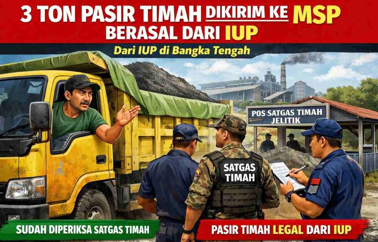 SUMSELTIME.COM, Babel – Kabar mengenai pengamanan 3 ton pasir timah yang hendak dikirim ke smelter PT MSP pada Rabu (24/12/2025) mendapatkan klarifikasi langsung dari pihak pengantar. Pasir timah tersebut dipastikan berasal dari lokasi Izin Usaha Pertambangan (IUP) resmi di wilayah Bangka Tengah dan telah melalui prosedur pemeriksaan yang sah.