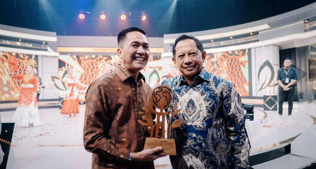 Penghargaan piala Kategori Citra Daerah Damai dan Inklusi diserahkan oleh Menteri Dalam Negeri Muhammad Tito Karnavian.
