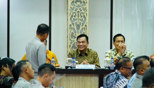 Hal ini ditegaskan Bupati Muba H M Toha Tohet SH bersama OPD terkait saat menghadiri rapat koordinasi Forkopimda se-Sumatera Selatan yang berlangsung di Auditorium Graha Bina Praja Provinsi Sumatera Selatan, Jumat (24/4/2026).