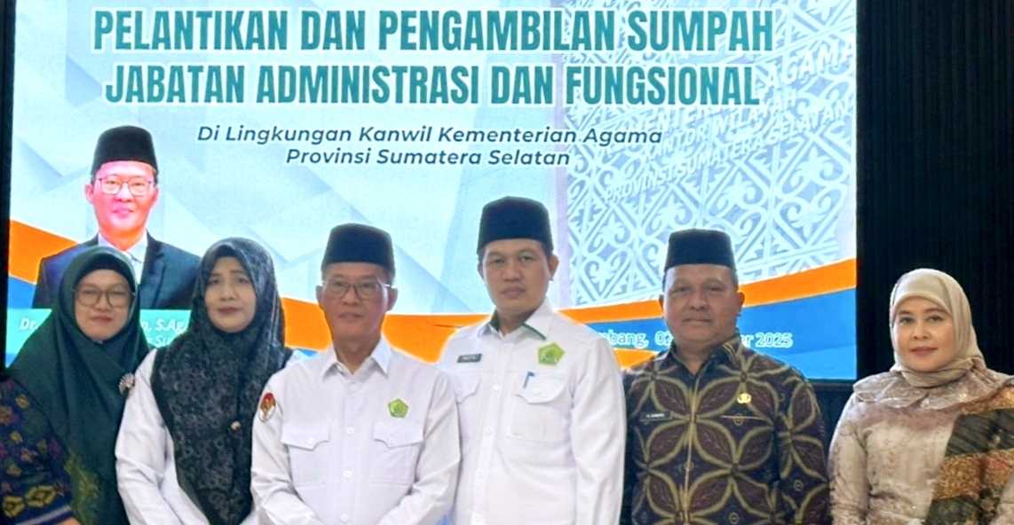 Pelantikan dan pengambilan sumpah jabatan administrasi dan fungsional tersebut dilaksanakan di aula kantor Kanwil Kemenag Sumsel pada Selasa, 2 Desember 2025, siang.