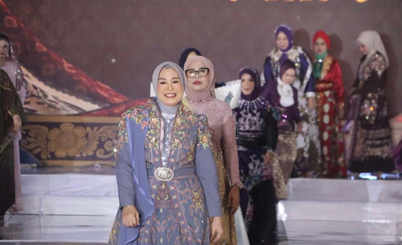 Peragaan busana, menjadi sorotan utama dalam rangkaian Rapat Konsultasi (Rakon) PKK dan Rapat Kerja Daerah (Rakerda) Dekranasda Provinsi Sumatera Selatan Tahun 2026.