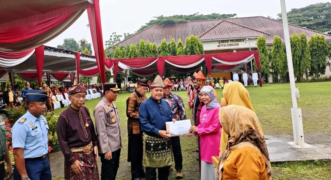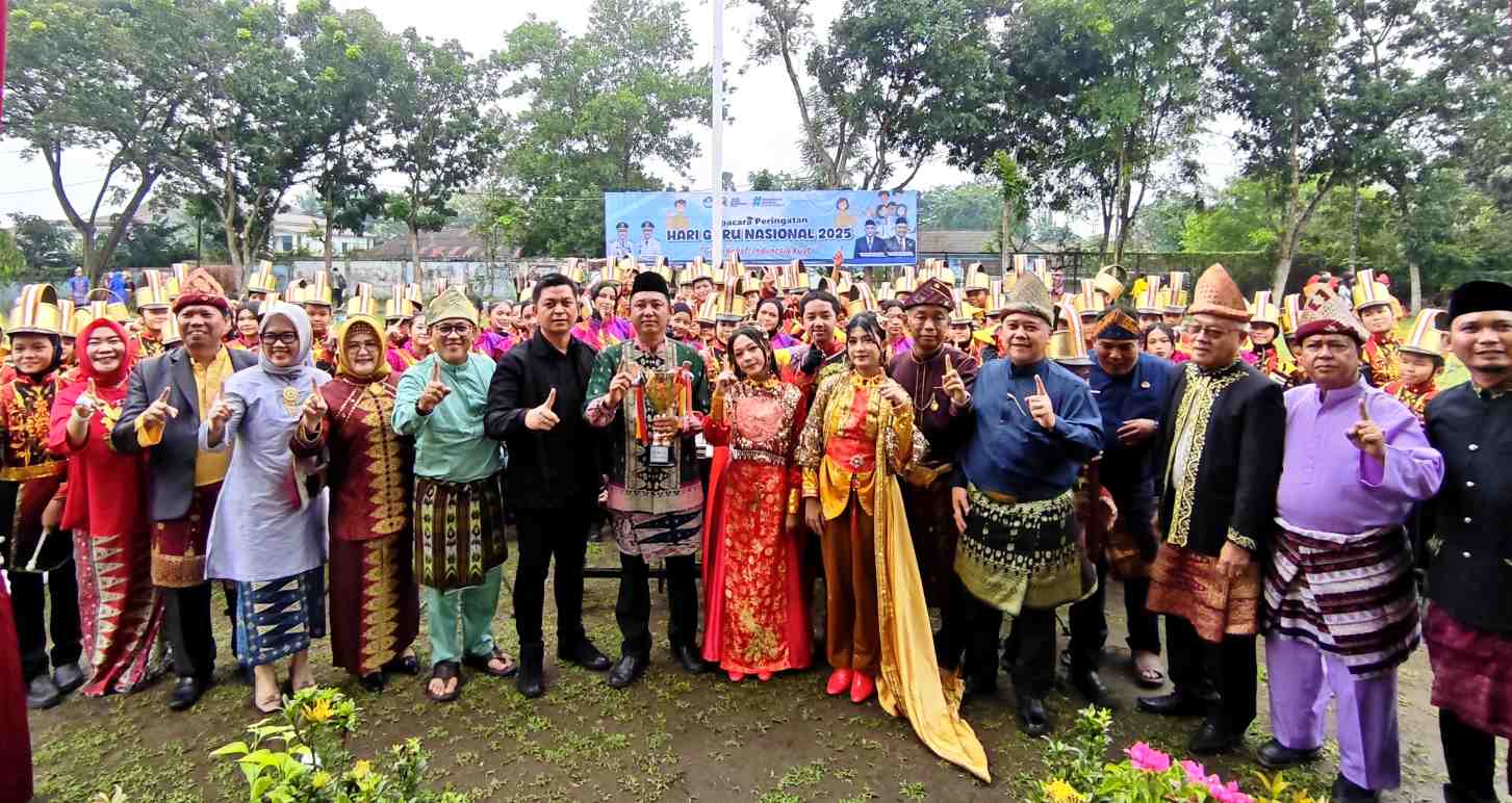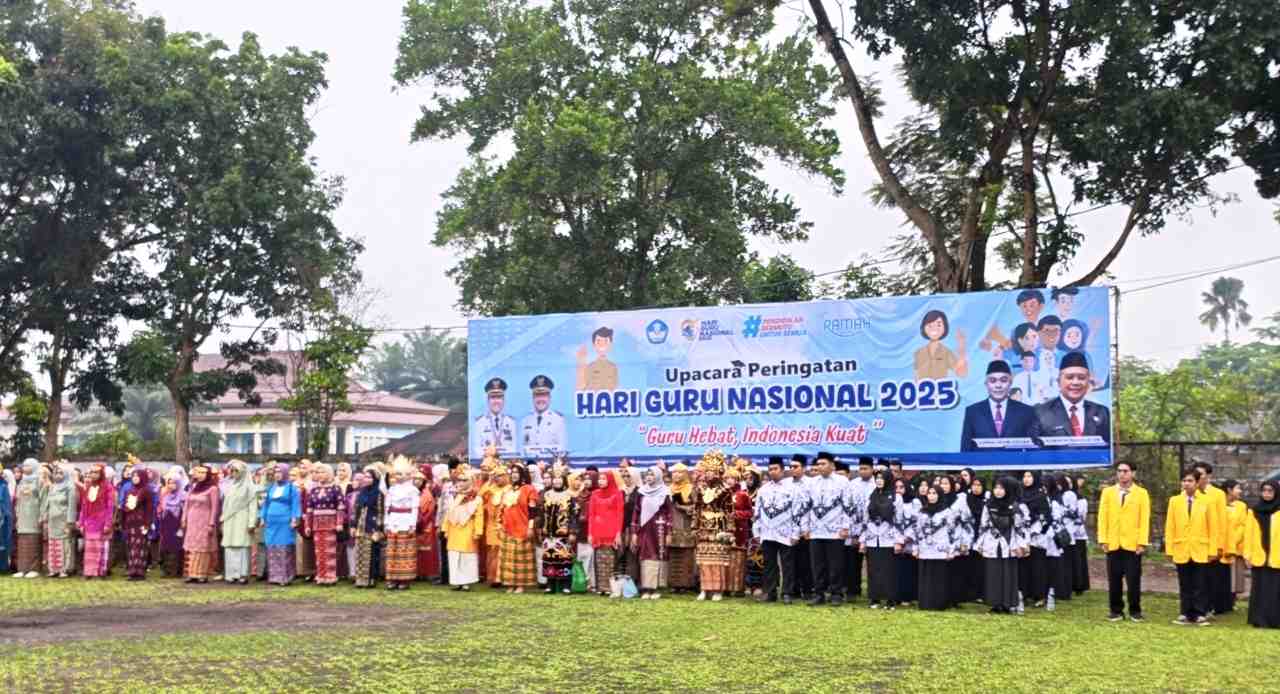 Peringatan Hari Guru Nasional (HGN) tahun ini digelar dengan khidmat di lapangan utama Kwartir Gerakan Pramuka Kota Palembang, di mana para peserta upacara tampil unik dengan mengenakan pakaian adat tradisional. Selasa (25/11/2025).