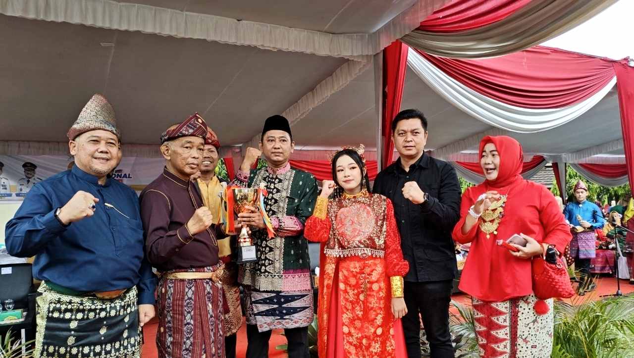 Asisten 1 Setda kota Palembang Ikhsanul Akmal menyerahkan trofi kepada MB Cakrawala Spensa didampingi Kadisdik