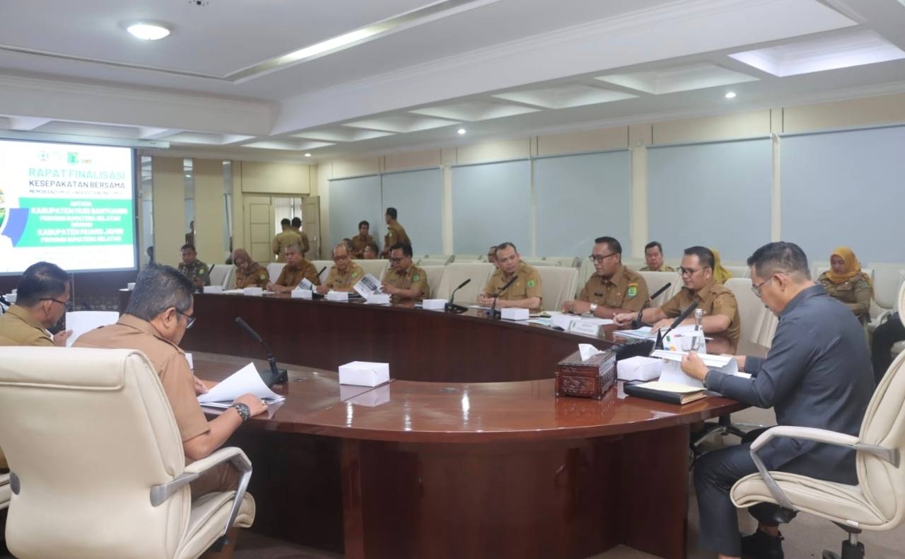 SUMSELTIME.COM, Muba – Pemerintah Kabupaten Musi Banyuasin (Pemkab Muba) menggelar rapat finalisasi kesepakatan bersama dengan Pemerintah Kabupaten Muaro Jambi, Provinsi Jambi, terkait kerja sama daerah. Rapat berlangsung di Ruang Rapat Serasan Sekate, Sekretariat Daerah Kabupaten Muba, Selasa (10/2/2026).