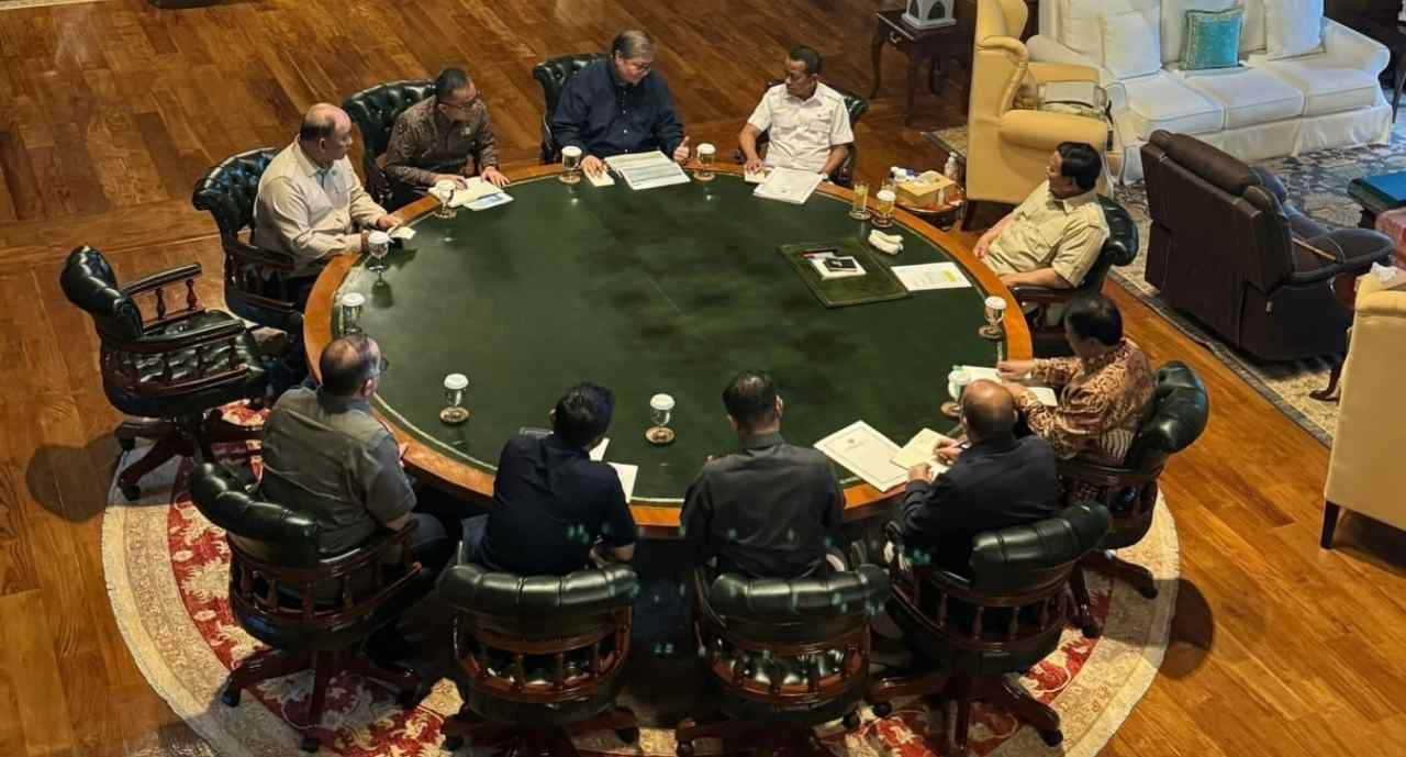 SUMSELTIME.COM, Jakarta – Presiden Prabowo Subianto menggelar rapat terbatas (Ratas) bersama sejumlah menteri di kediamannya di Hambalang, Bogor, Jawa Barat (Jabar). Prabowo membahas sejumlah hal mulai dari penguatan industri garmen hingga investasi.