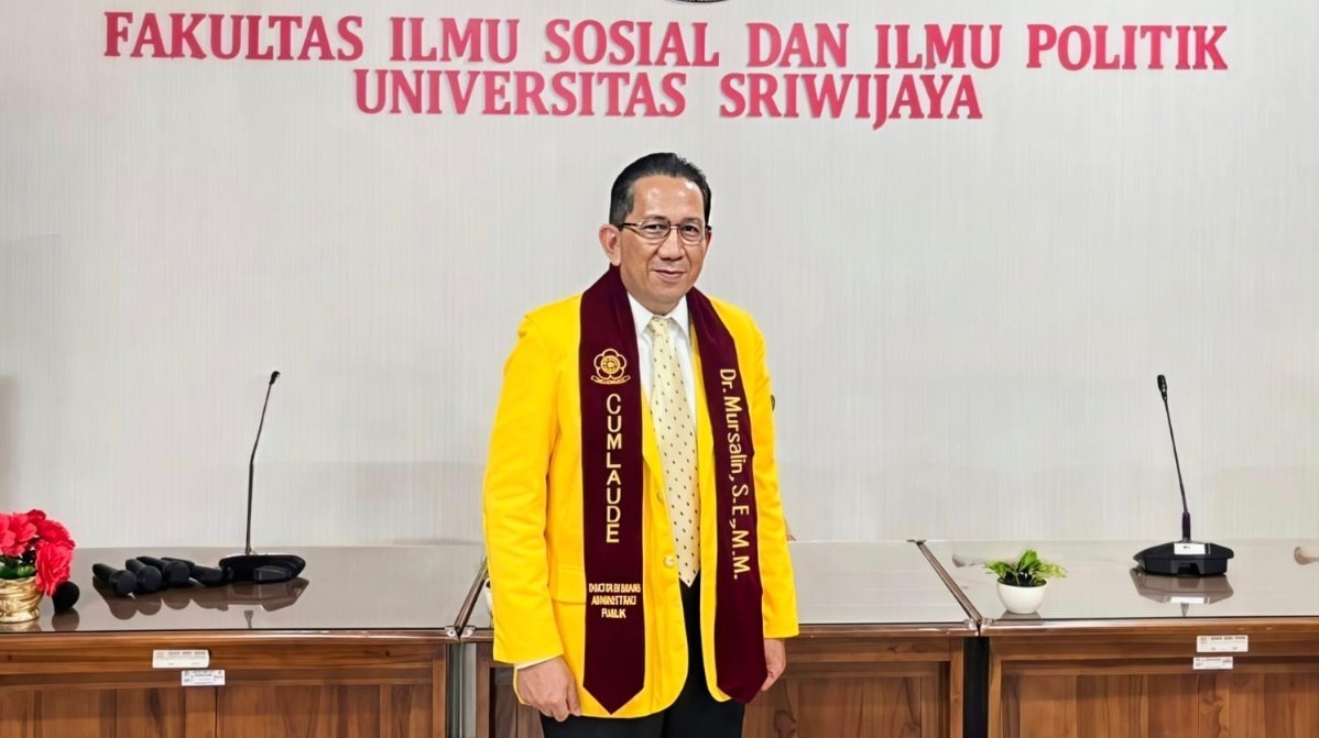 SUMSELTIME.COM, Palembang – Kepala Badan Perencanaan Pembangunan Daerah (Bappeda) Kabupaten Musi Banyuasin Dr Mursalin SE MM, resmi menuntaskan Ujian Akhir Disertasi Program Doktor Administrasi Publik di Fakultas Ilmu Sosial dan Ilmu Politik Universitas Sriwijaya, Jumat (6/12/2025).