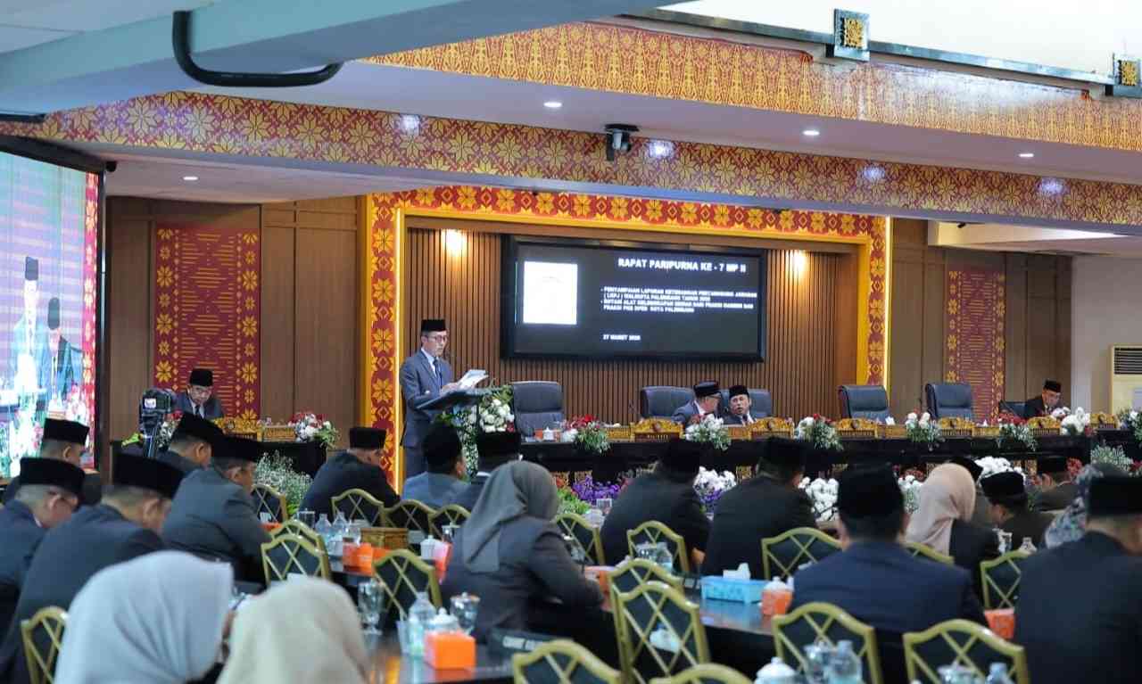 SUMSELTIME.COM, Palembang – Wali Kota Palembang, H. Ratu Dewa, menghadiri Rapat Paripurna DPRD Palembang dalam rangka penyampaian Laporan Keterangan Pertanggungjawaban (LKPJ) Wali Kota Palembang Tahun Anggaran 2025, di Ruang Rapat Paripurna DPRD, Palembang Jumat (27/3/2026).