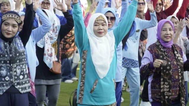 Atmosfer kemeriahan sudah terasa sejak awal kegiatan. Ribuan peserta yang didominasi kaum perempuan tampil penuh semangat, mengikuti setiap gerakan dengan kompak, energik, dan penuh keceriaan.
